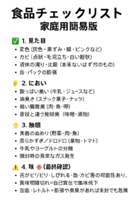 → 賞味期限切れは「美味しさ低下」、消費期限切れは「安全性リスク」と覚えておくと実生活で判断しやすい。食品ロスの観点